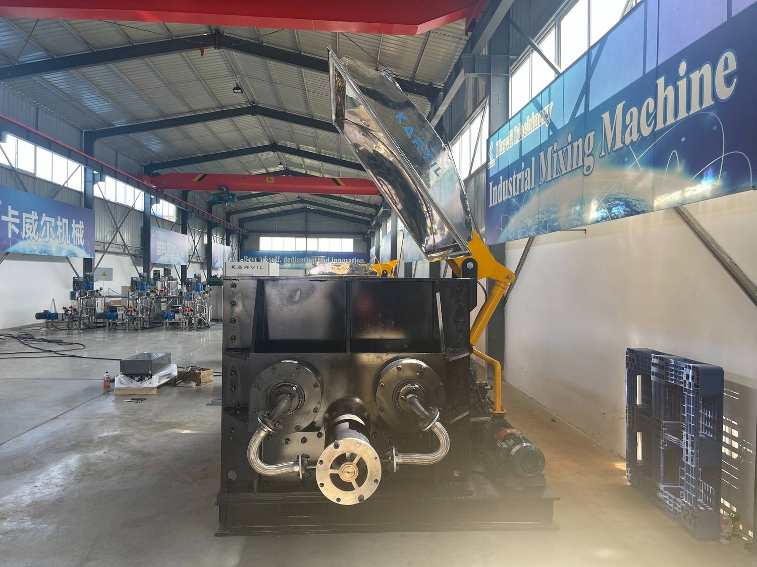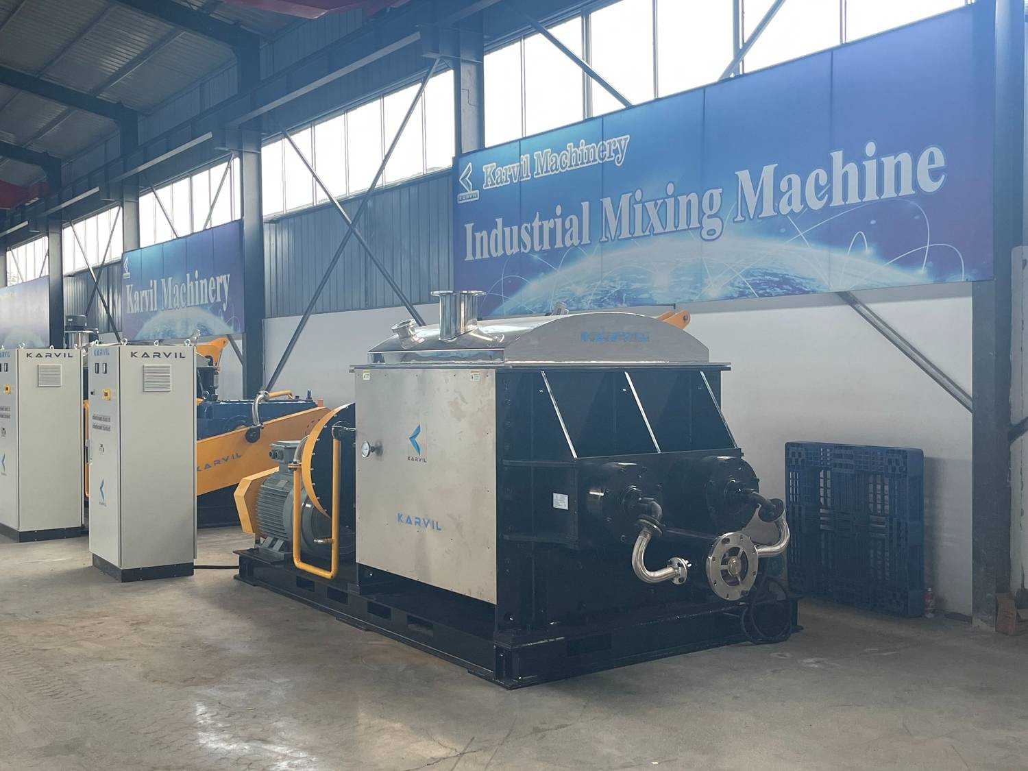 Karvil a une équipe technique professionnelle dédiée à la recherche, à la conception et à la fabrication de mélangeurs Sigma et de mélangeurs de ruban . Notre équipement a déjà été vendu dans plus de 50 pays et diverses industries dans le monde.